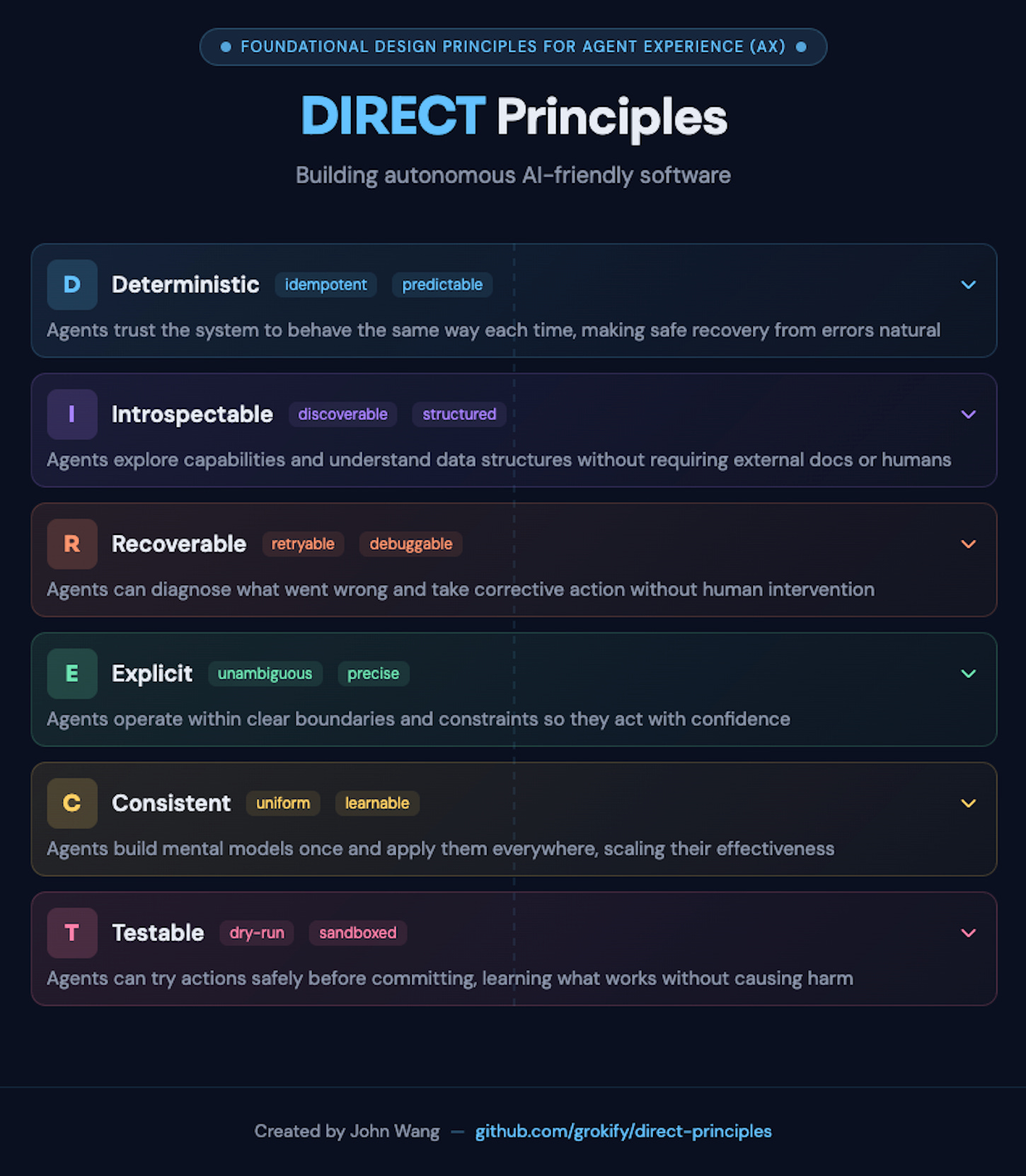 DIRECT is to Agent Experience what SOLID is to Object-Oriented Design: a foundational set of principles that guide the creation of interfaces AI agents can reliably use.